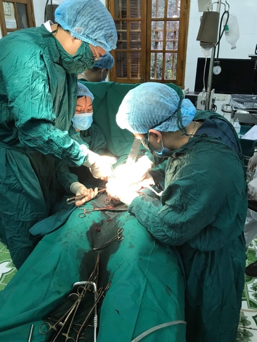 Trung tâm đã khẩn trương mổ cấp cứu, đồng thời xin huy động ngân hàng máu sống để truyền cho bệnh nhân. Trong quá trình mổ, kíp mổ đã hút trong ổ bụng bệnh nhân ra 2 lít máu tươi lẫn máu cục và tìm được khối chửa, kẹp và cắt bỏ.