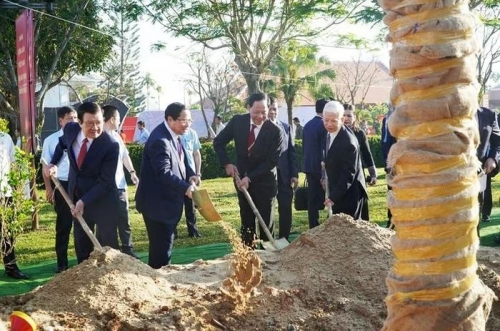 Thủ tướng Phạm Minh Chính cùng nguyên lãnh đạo Đảng, Nhà nước và các bộ, ngành trồng cây xanh trong khuôn viên lưu niệm |