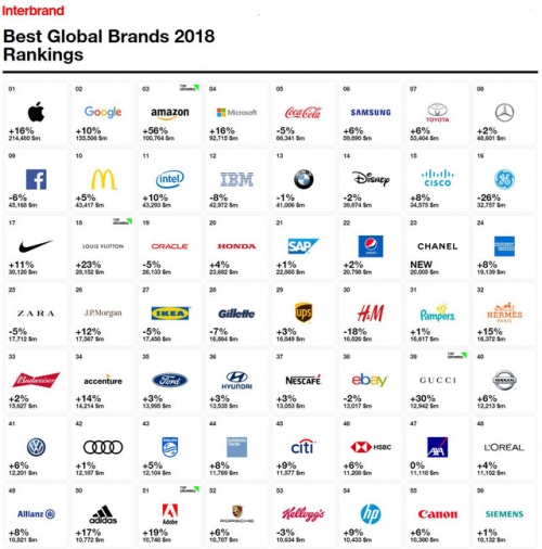 Cả hai tên tuổi này đều nằm trong top 10 của danh sách 100 thương hiệu giá trị nhất thế giới năm 2018.
