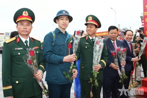 Lãnh đạo Quân khu 3 và Bộ CHQS TP Hải Phòng động viên thanh niên nhập ngũ. |