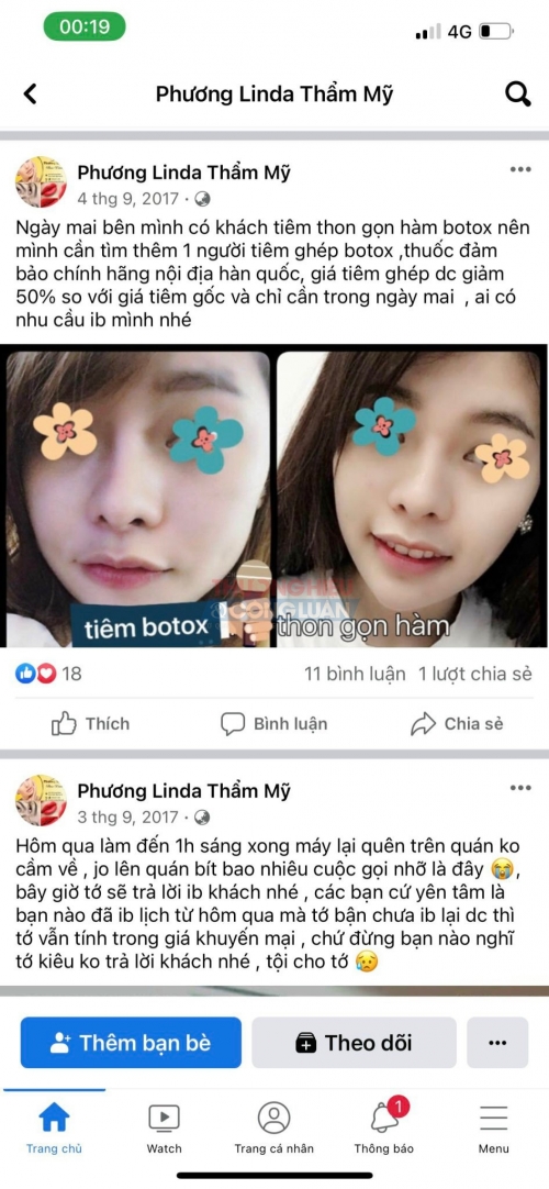 Ảnh chụp facebook của bà Ph chủ cơ sở Phương Linda. (Ảnh: Quỳnh Nga) |