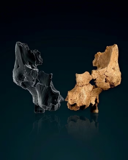 Những di tích này bao gồm khoảng 80% phần xương bên trái khuôn mặt của một người trưởng thành, bao gồm các phần của xương gò má, hàm trên và cấu trúc mũi. Ảnh: @Trung tâm Nghiên cứu Quốc gia về Tiến hóa Loài người. |