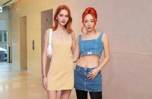 Cùng để màu tóc cam nổi bật, nhưng Tóc Tiên vẫn đầy cuốn hút khi đứng cạnh 'ma nữ đẹp nhất Thái Lan' Mai Davika. |