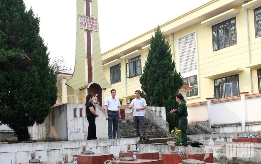 Đoàn công tác Ban chỉ đạo 515 tỉnh Thái Nguyên khảo sát bia mộ tại Nghĩa trang liệt sĩ xã Vô Tranh. |