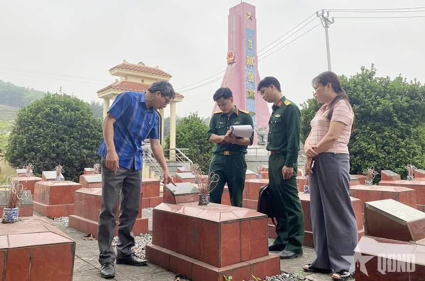 Đoàn công tác Ban chỉ đạo 515 tỉnh Thái Nguyên khảo sát bia mộ tại Nghĩa trang liệt sĩ xã Yên Trạch. |