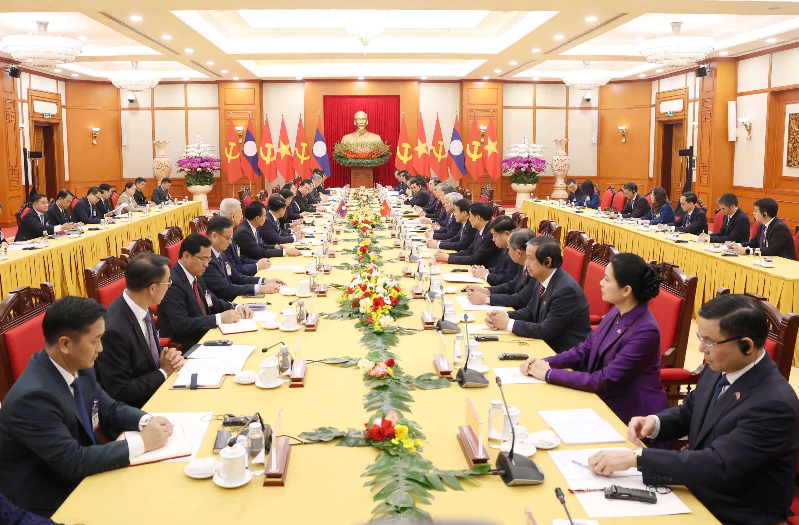 Hai nhà lãnh đạo đã trao đổi sâu rộng về chủ trương, chính sách lớn trong Nghị quyết Đại hội mỗi Đảng, tình hình mỗi nước, tình hình thế giới và khu vực; và phương hướng thúc đẩy hơn nữa mối quan hệ hữu nghị vĩ đại, đoàn kết đặc biệt, hợp tác toàn diện, gắn kết chiến lược Việt Nam - Lào trong giai đoạn mới. Hai bên nhất trí rằng trong bối cảnh tình hình quốc tế, khu vực diễn biến nhanh chóng, phức tạp, khó lường, việc hai Đảng, hai Nhà nước Việt Nam - Lào tiếp tục tăng cường đoàn kết, gắn bó, tin cậy chính trị và phối hợp chặt chẽ càng có ý nghĩa đặc biệt quan trọng.