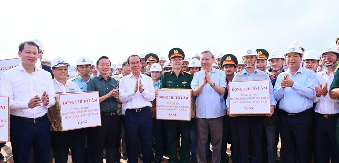 Tổng Bí thư Tô Lâm tặng quà, chụp hình với lực lượng thi công dự án sân bay Long Thành |
