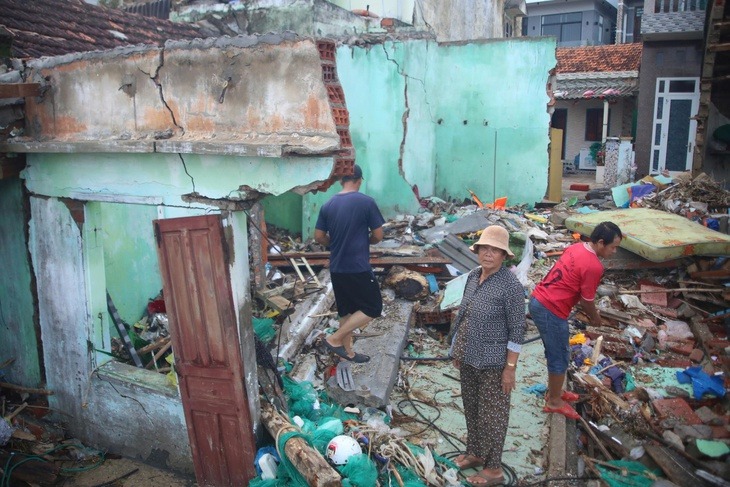 Nhà dân ở làng chài ven biển Nhơn Lý, phường Quy Nhơn Đông, tỉnh Gia Lai sập đổ sau bão Kalmaegi - Ảnh: MINH HÒA |