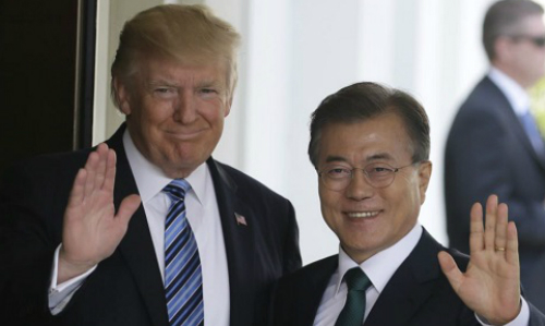 Tổng thống Hàn Quốc (phải) và Tổng thống Mỹ trong chuyến thăm Nhà Trắng hồi tháng 6/2017 của ông Moon Jae-in. Ảnh: Reuters. |