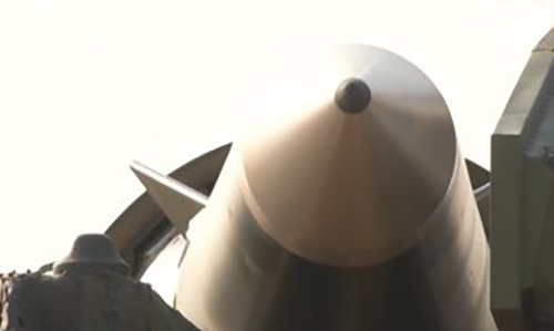 Phần mũi tên lửa đạn đạo chống hạm DF-26 của Trung Quốc. Ảnh: CCTV. |