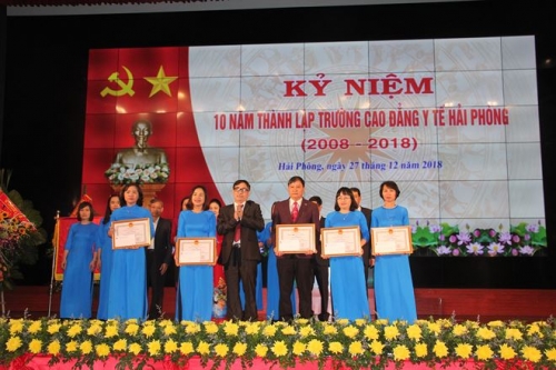 Nhân sự kiện có ý nghĩa to lớn đối với tập thể cán bộ, giảng viên, sinh viên tại Nhà trường sau 10 năm nỗ lực phấn đấu đào tạo nguồn nhân lực ngành y tế tại TP Cảng, trường Cao đẳng y tế Hải Phòng vinh dự được UBND TP tặng cờ truyền thống.