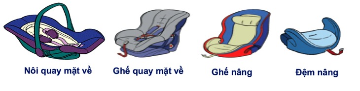 Một số thiết bị an toàn cho trẻ theo độ tuổi được Ủy ban An toàn giao thông Quốc gia khuyến cáo sử dụng - Ảnh: Ủy ban An toàn giao thông Quốc gia |