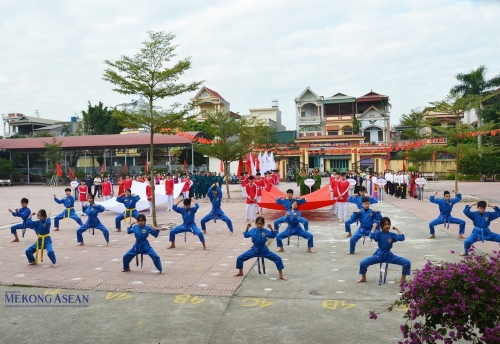Biểu diễn võ Vovinam của các cháu thiếu niên nhi đồng trên địa bàn xã. Ảnh: Phùng Nguyện/Mekong ASEAN. |