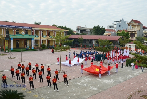 4 đội gồm khối Đảng, chính quyền, đoàn thể; Ban Chỉ huy quân sự xã; Công an xã; khối giáo dục và đào tạo xã Tuệ Tĩnh. Ảnh: Phùng Nguyện/Mekong ASEAN. |