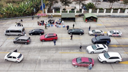 Chốt kiểm soát người ra vào thành phố cuối cao tốc Hà Nội - Hải Phòng. |