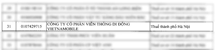 Trong danh sách của Cục Thuế, đáng chú ý có Công ty cổ phần Viễn thông di động Vietnamobile.
