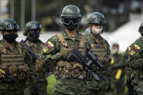 Binh sĩ tuần tra trên tuyến đường ở Quito, Ecuador. Ảnh tư liệu - minh họa: AFP/TTXVN |