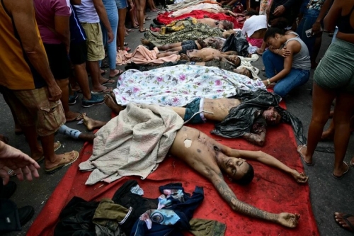 Người dân xếp các thi thể tại quảng trường Sao Lucas ở Rio de Janeiro, Brazil ngày 29-10 - Ảnh: AFP |