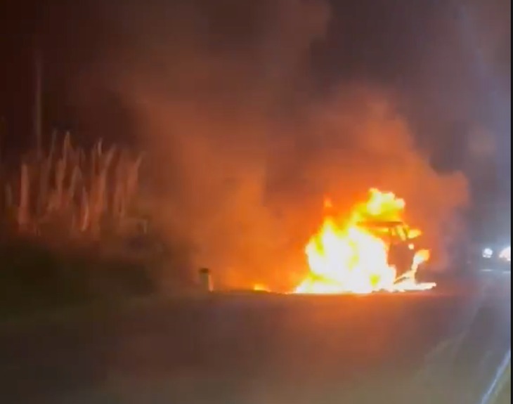 Ngọn lửa xuất phát từ phần đầu xe rồi nhanh chóng lan ra phía sau. Do địa hình đèo dốc, gió mạnh nên ngọn lửa nhanh chóng lan ra khiến toàn bộ thân xe bị lửa bao trùm.