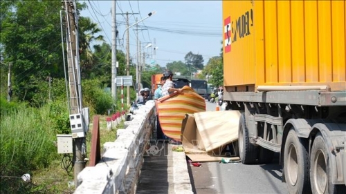 Xe container va chạm xe máy trên Quốc lộ 22B làm một người tử vong