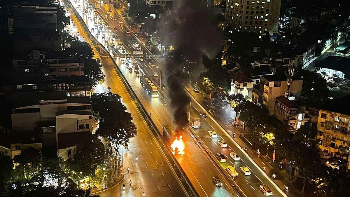 Vào khoảng 21h35 phút tối 13/10, một ô tô đầu kéo mang 29C-923.XX bất ngờ bốc cháy dữ dội phần đầu xe khi đang lưu thông trên đường vành đai 3 trên cao (từ Khuất Duy Tiến đi Đại lộ Thăng Long, đoạn qua phường Thanh Xuân, TP Hà Nội).