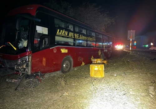 Tại hiện trường, xe máy bị gãy nát, nằm kẹt phía trước đầu xe khách. Người điều khiển xe máy nằm bất động trên mặt đường, được lực lượng chức năng đưa đi cấp cứu nhưng đã tử vong.